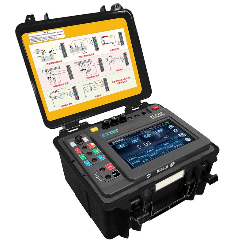 儀表采用7寸觸摸彩屏,操作簡(jiǎn)易。可進(jìn)行接地電阻測(cè)試、絕緣電阻測(cè)試、直流電阻測(cè)試、RCD漏電保護(hù)器測(cè)試、電氣插座檢測(cè)、電流有效值測(cè)試、交流電壓測(cè)試、相序測(cè)試等參數(shù)測(cè)量;儀表功能更全,準(zhǔn)確度更高,性能穩(wěn)定,操作方便可靠。