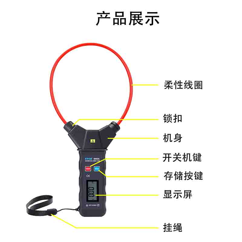 ETCR6900A柔性電流鉗表還具有峰值保持、數據保持、數據存儲等功能,是電工安全檢測的必備工具。