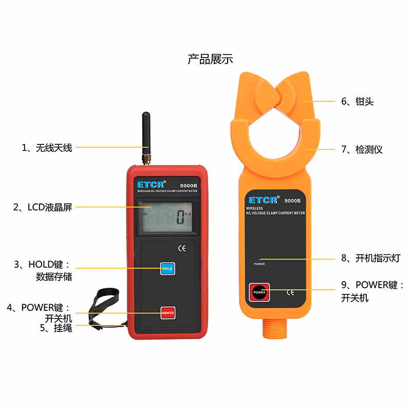 | ETCR9000B無線高低壓鉗形電流表 | Φ48mm | AC 0mA~1200A | 99組 | —— | 30m |