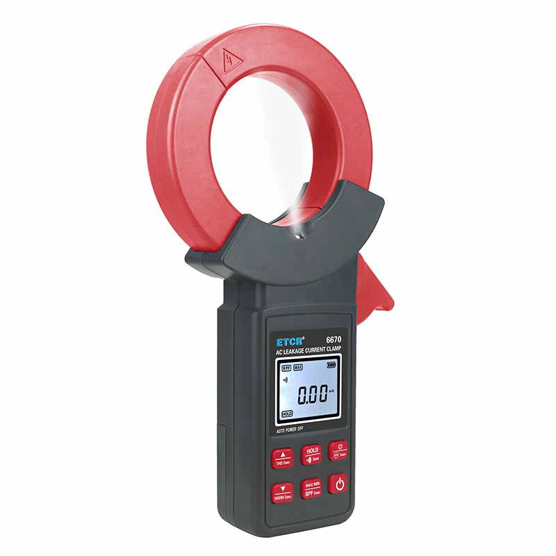 ETCR6670鉗形漏電流表可測試40Hz~1kHz頻率范圍的電流。鉗表還具有背光、手電筒、數據存儲、藍牙通訊等功能。鉗表使用大容量鋰電池type-c充電口,是一款新型的電工安全檢測必備工具。