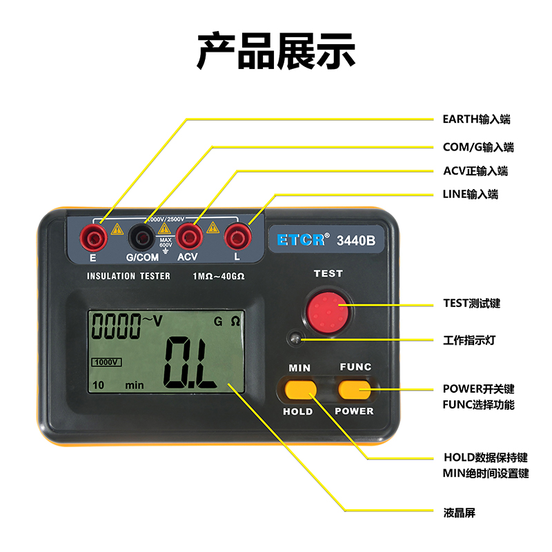 ETCR3440B絕緣電阻表500V、1000V、2500V0.5MΩ~40GΩ1mA MAXAC:0V~600V