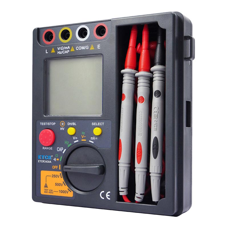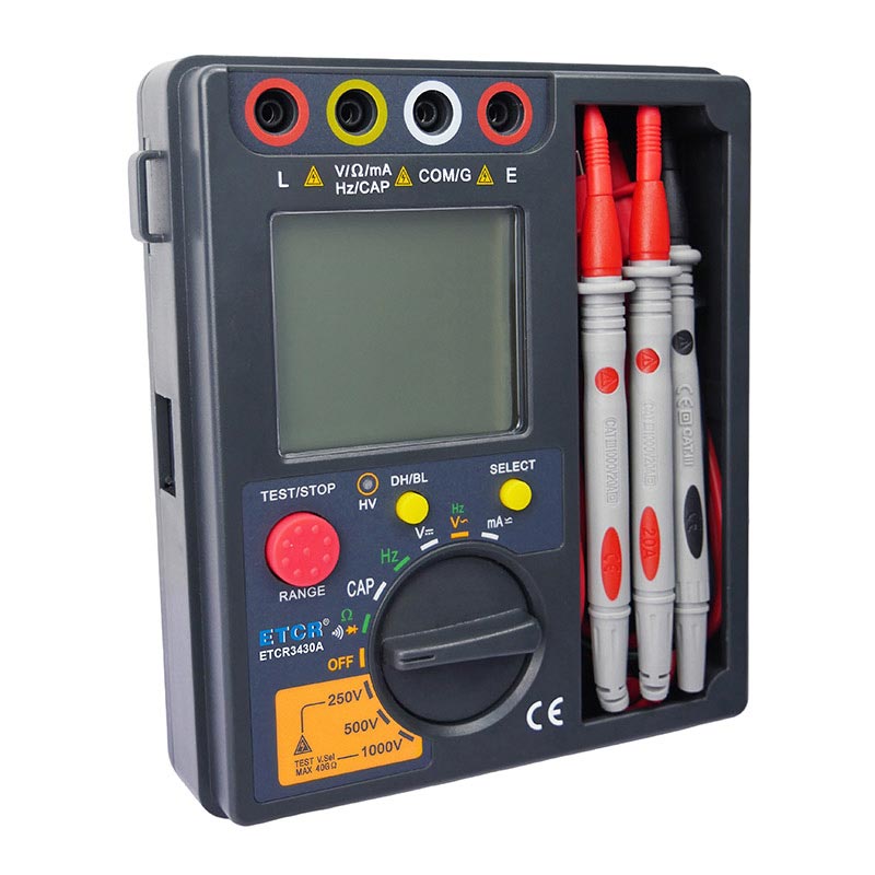 ETCR3430A高壓絕緣電阻萬用表250V/500V/1000V0.25MΩ~10GΩ1mA MAXDC:0V~1000VAC:0V~700V0nF~40mF