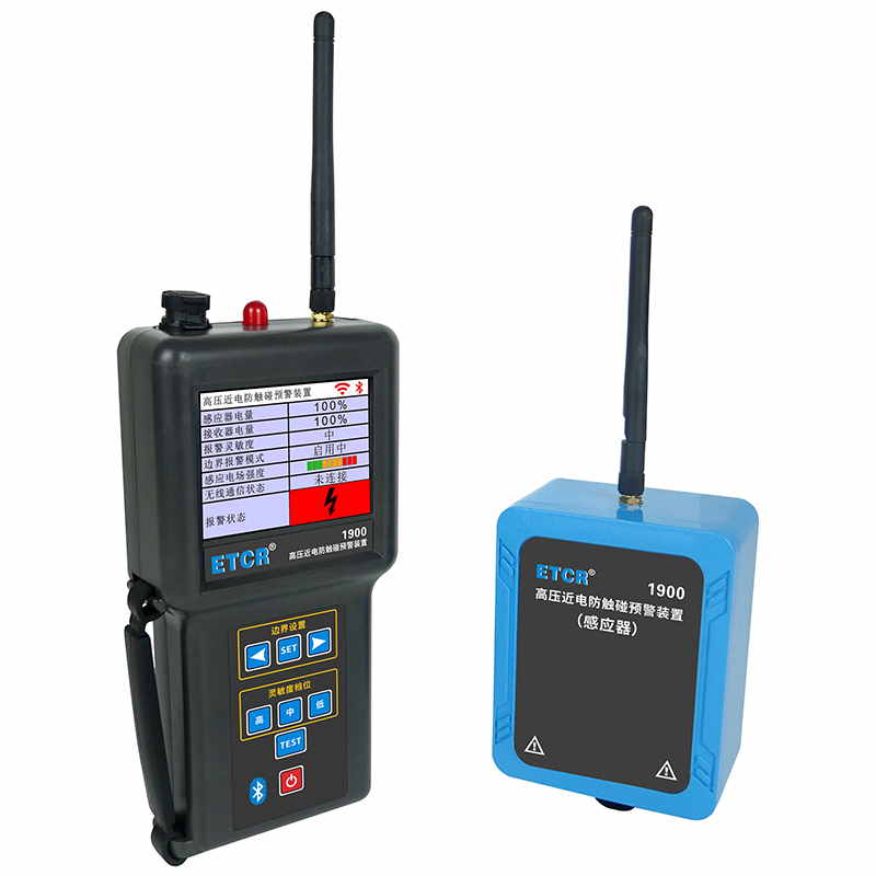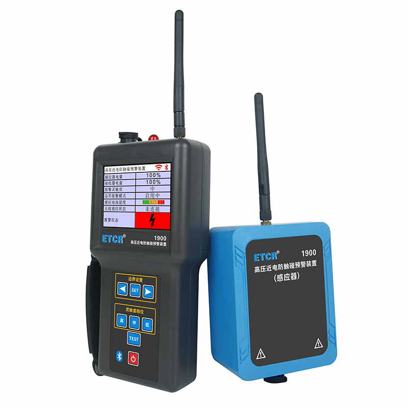 ETCR1900高壓近電防觸碰智能預(yù)警裝置由感應(yīng)器、外置電池、接收器、藍(lán)牙APP組成。感應(yīng)器采用非接觸感應(yīng)技術(shù)用于監(jiān)測(cè)高壓電場(chǎng),接收器接受感應(yīng)器發(fā)送的監(jiān)測(cè)信號(hào),當(dāng)電場(chǎng)強(qiáng)度達(dá)到設(shè)定的報(bào)警值時(shí),觸發(fā)報(bào)警功能發(fā)出聲光報(bào)警及語(yǔ)音報(bào)警。感應(yīng)器與接收器采用無(wú)線通訊,傳輸距離200米。裝置具有報(bào)警靈敏度調(diào)節(jié)和邊界報(bào)警功能,用戶可在接收器設(shè)置報(bào)警靈敏度或自設(shè)定報(bào)警距離,以適應(yīng)復(fù)雜電場(chǎng)的環(huán)境。接收器具有485接口及藍(lán)牙功能,便于用戶二次開發(fā)。移動(dòng)終端安裝APP后,可查看報(bào)警信號(hào)或設(shè)置報(bào)警參數(shù)。