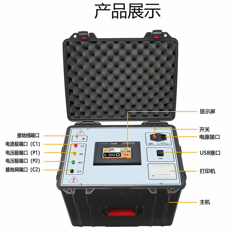 ETCR3300B大型地網接地電阻測試儀又稱大地網接地阻抗測試儀、異頻法接地電阻測試儀、大地網測試儀,用于變電站地網、發(fā)電廠、微波站、通訊基站等大型地網接地參數測量。儀器功能強大,可測試工頻接地阻抗、接地導通電阻、土壤電阻率、跨步電壓、接觸電壓、電位梯度等工頻特性參數。