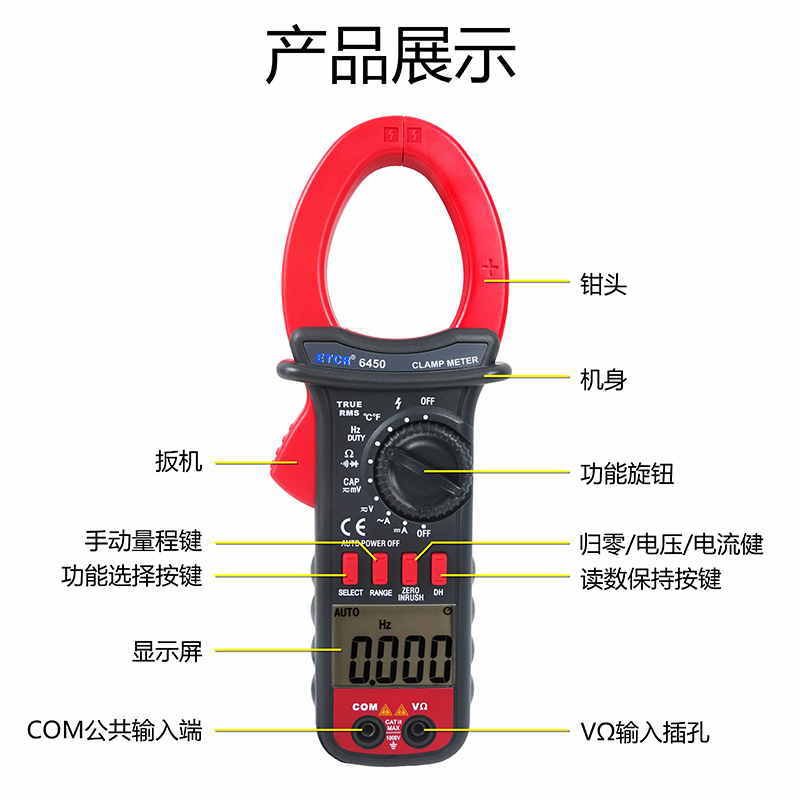 ETCR6450鉗形萬用表可用于各類大專院校、冶煉、通訊、制造、石油、國防、電力、電子、電力設(shè)備的檢測、維護(hù)和維修的理想工具。為用電檢查人員提供一種安全、準(zhǔn)確、便捷的新型電力儀表,是電工安全檢測的必備工具。
