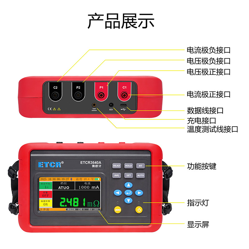1、最大測試電流1A,寬量程:1.0uΩ~40kΩ,高分辨率0.1uΩ。