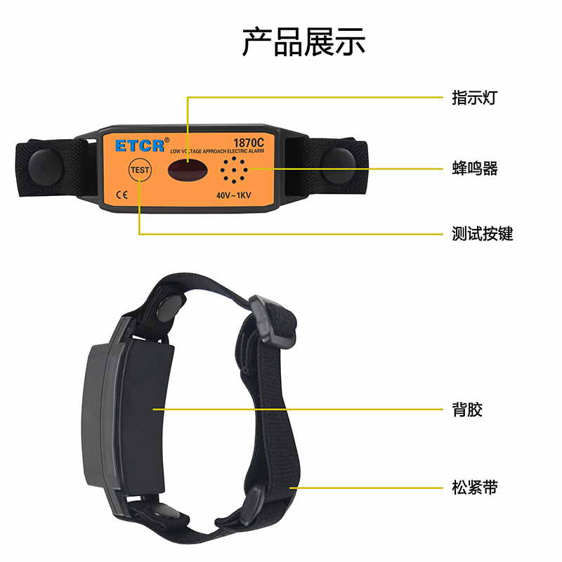 ETCR1870C手腕式近電報(bào)警器又稱(chēng)穿戴式近電報(bào)警器,為近電作業(yè)人員提供一款安全、實(shí)用、便捷的新型高壓報(bào)警裝置。帶電作業(yè)時(shí),操作人員與帶電體的安全距離不能低于相關(guān)工作規(guī)程的要求。作業(yè)人員佩戴本報(bào)警器后,在接近高壓帶電體一定距離時(shí),根據(jù)電壓等級(jí)相應(yīng)的安全距離,報(bào)警器發(fā)出聲光報(bào)警,提醒電氣工作人員注意安全,避免發(fā)生高壓觸電事故。