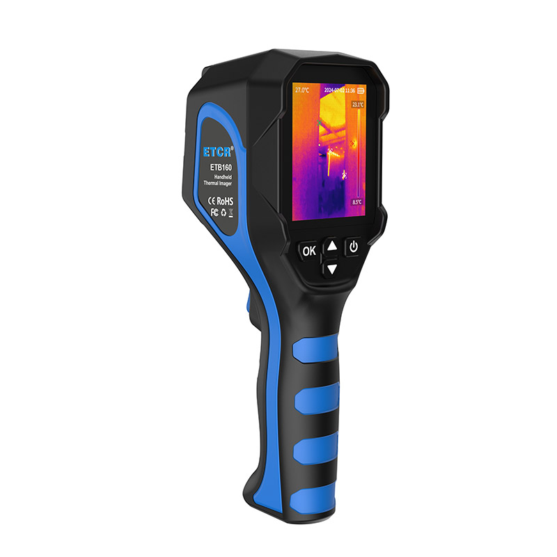 ETB160手持式紅外熱成像儀是一款手持式測溫紅外熱成像儀,又稱熱成像儀、溫度分析儀等,其分辨率為:162×120。是測溫、成像一體的多用途熱像儀;可進行實時觀察圖像、溫度分析等功能,是電工和維修人員快速定位故障區(qū)域的理想選擇。