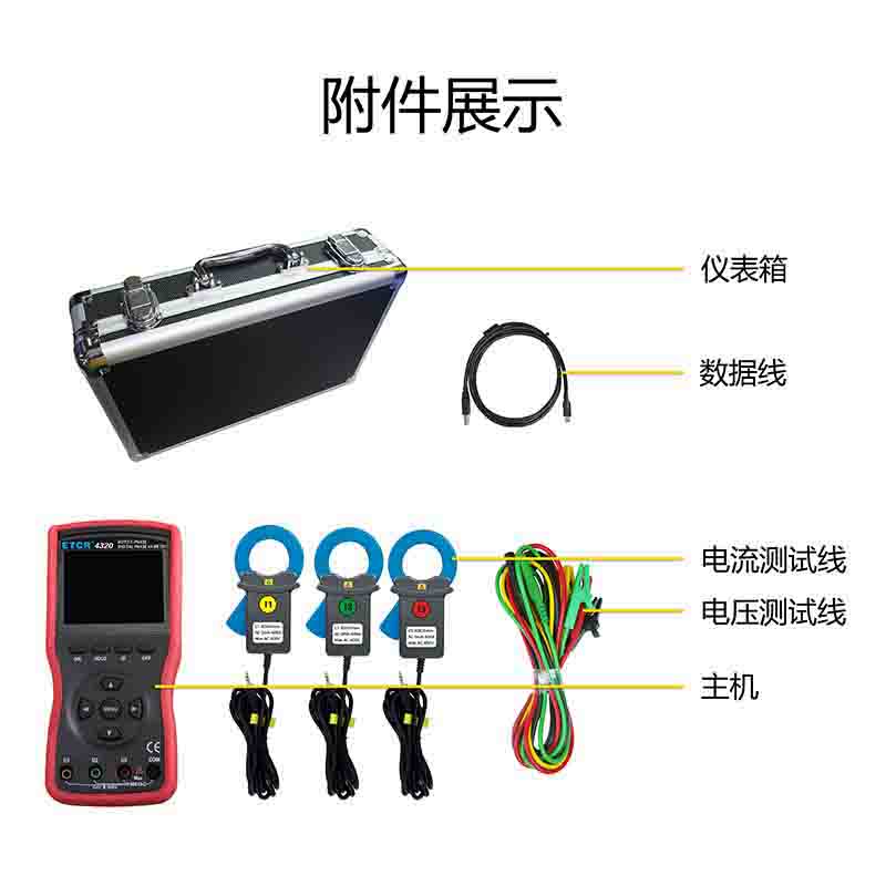 ETCR4320大口徑三相數字相位伏安表Φ40mm0~360°0.00V~600V0mA~600A0.0W~360kW--