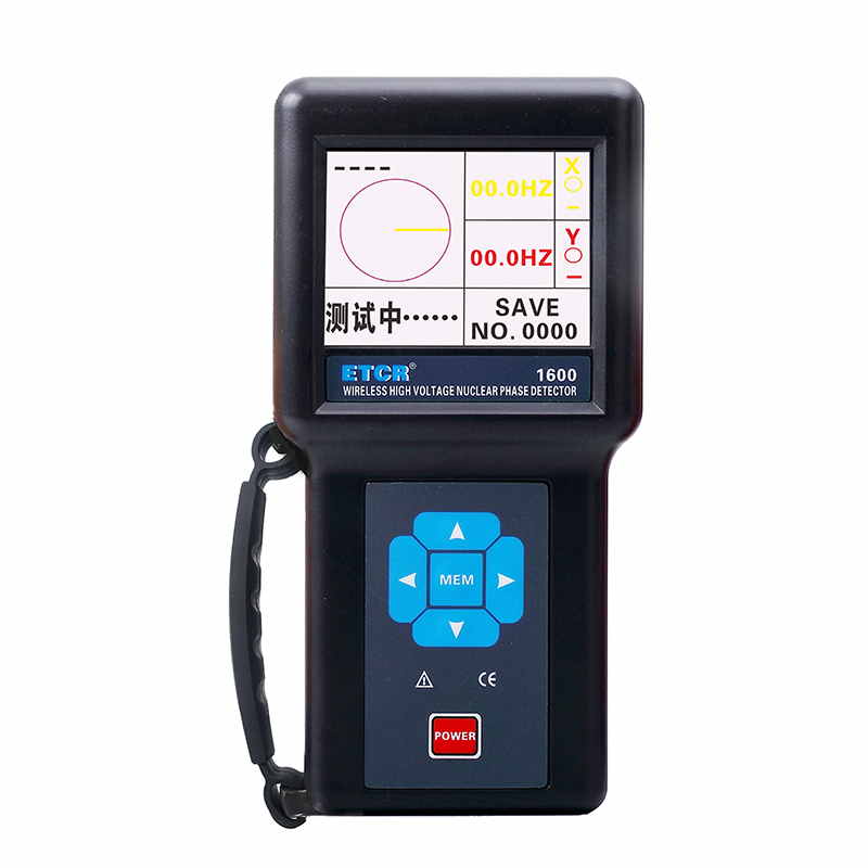 ETCR1600無線高壓核相儀由主機、2個探測器、伸縮絕緣桿、數據上傳軟件、USB通訊線等組成,主機采用3.5寸真彩液晶屏,可以同屏顯示相位、頻率、相序及核相結果,向量圖指示、相位指示清晰直觀,具有“X信號正常、Y信號正常、Z信號正常、正相序、反相序、同相、異相”等語音提示功能,使測試更簡單輕松。儀表有USB通信接口,存儲數據可上傳電腦進行歷史數據讀取、查閱、保存、打印。