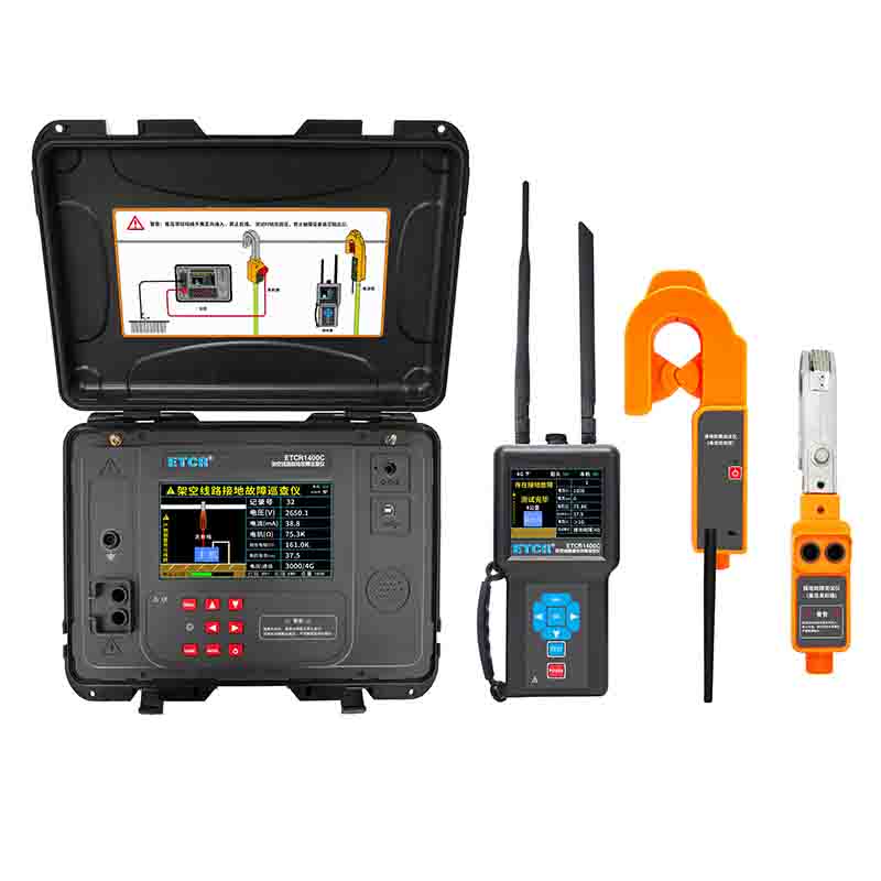 ETCR1400C架空線路接地故障巡查儀,可進行多條線路的接地故障定位。在架空線路停運后,由高壓發(fā)射端向線路施加低頻高壓信號,電流檢測鉗檢測電纜線的信號,通過主機分析脈沖電流及阻抗,判斷有無接地故障,在接收機液晶屏顯示及語音播報檢測結(jié)果。