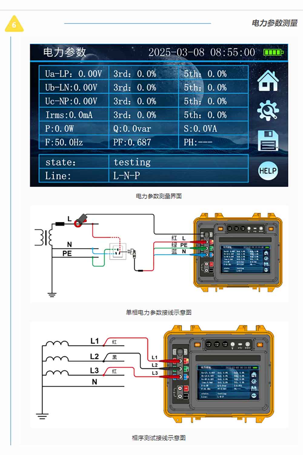 測試示意圖及接線標識用不同顏色區分方便用戶在不同功能下的不同使用習慣。